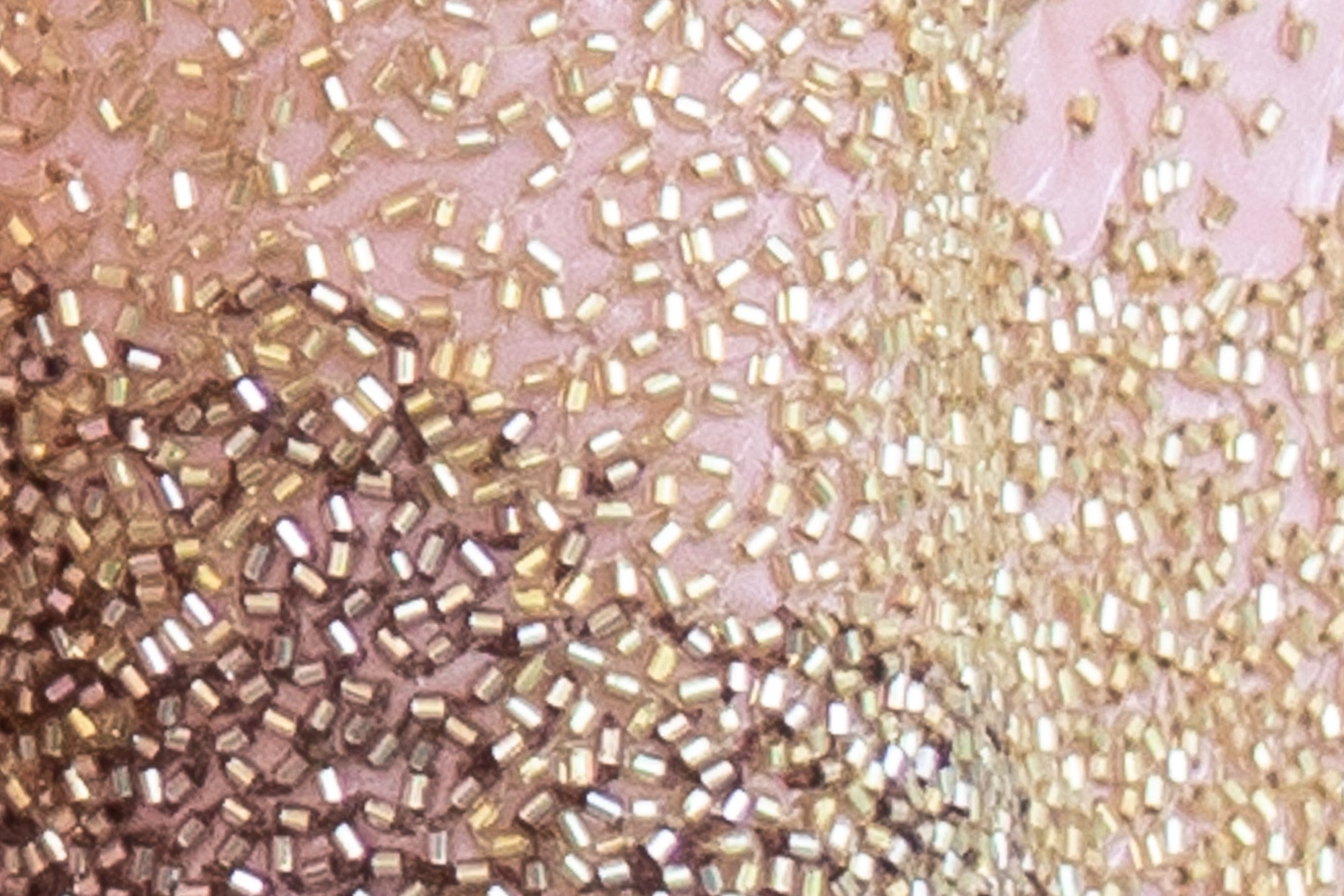Zerith’s gold beadwork and sculpted collar are inspired by royal motifs, meticulously hand-applied to the sheer pastel organza. Each detail reflects KUNST’s commitment to artisanal craftsmanship and elevated modest luxury.